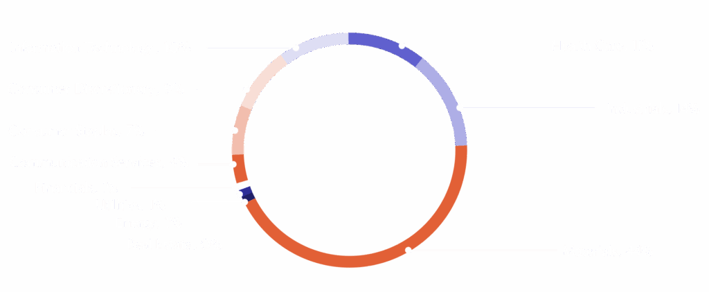 As of 31 Dec 2024, the transition Climate Value at Risk (“CVaR”) of our total AUM, based on the IEA’s Net Zero 2050 scenario, is estimated to be 19%. Currently 19% of the portfolio companies by value have committed or approved Science Based Targets (“SBT”). Another 38% have set reduction targets, whilst the remaining 43% do not have a carbon reduction target. The sector-level attribution of the transition CVaR is estimated as follows: